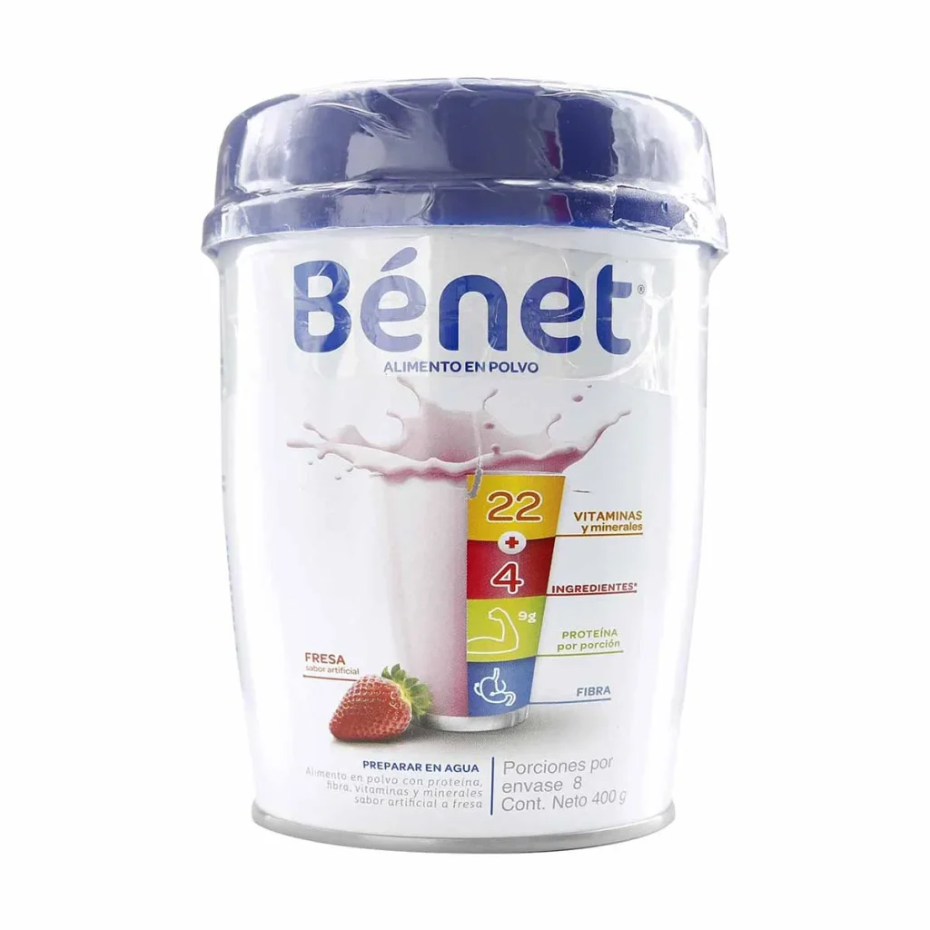 BENET Polvo Sabor Fresa: Nutrición completa con vitaminas, minerales, proteínas y fibra. Ideal para reforzar tu dieta diaria.