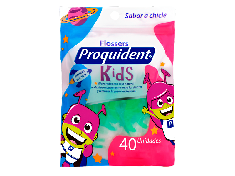 Contiene hilo dental delgado y fuerte, especialmente diseñado para niños, y un mango que facilita su uso, lo que asegura una correcta eliminación de residuos alimenticios y placa bacteriana.