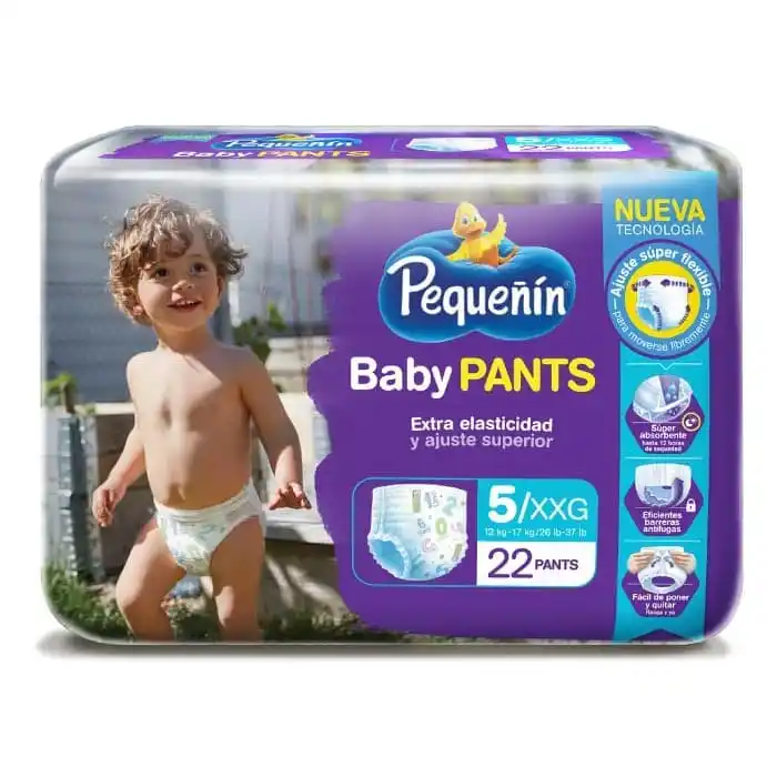 El principal punto fuerte del Pañal Pequeñín Baby Pants Etapa 5 es su ajuste perfecto y anatómico que acompaña el movimiento natural del bebé, previniendo derrames y ofreciendo máxima comodidad.