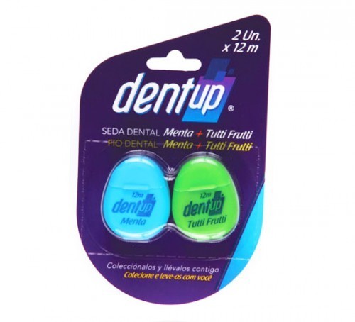 Seda Dental Dentup está hecha de hilo de nylon durable embebido en un saborizante de menta y tutti frutti, lo que proporciona frescura agradable mientras ayuda a limpiar eficazmente entre los dientes.