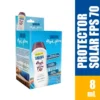 Aplica generosamente el contenido de un sachet de 8 ml al menos 15 minutos antes de la exposición al sol. Reaplica cada 2 horas o después de nadar o sudar para mantener la protección. Evita el contacto con los ojos. Para uso facial y corporal en adultos y niños mayores de 6 meses.