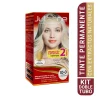El TINTE JULIENNE ESTUCHE DOBLE RUBIO EXTRA CLARO 10-0 incluye ingredientes esenciales como amoníaco para la apertura de la cutícula del cabello, peróxido en el revelador para la oxidación del color, y acondicionadores que protegen la estructura capilar durante el proceso de coloración.