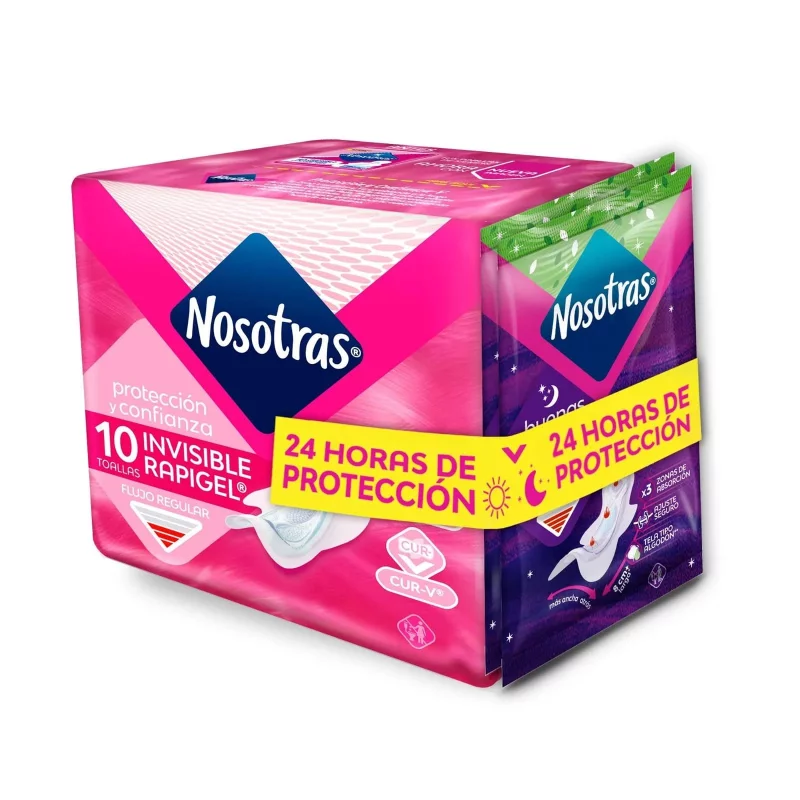 Toalla Nosotras Normal Tela PX10 es un producto diseñado para brindar comodidad y protección durante el periodo menstrual. Ofrece una absorción efectiva para mantener la frescura y evitar filtraciones durante el día. El vendaje extra de Inv Rapigel ayuda a calmar cualquier dolor localizado, ofreciendo un cuidado integral.